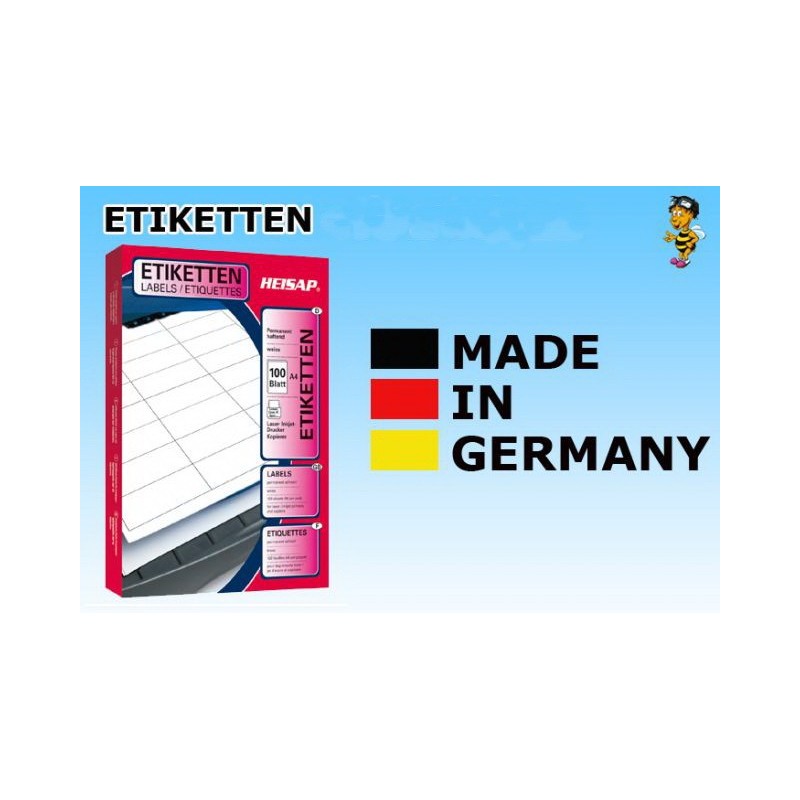 Heisap - Selbstklebende Etiketten 63,5x46,6mm (1800 Stück auf 100 Blatt A4) 1 Päckchen