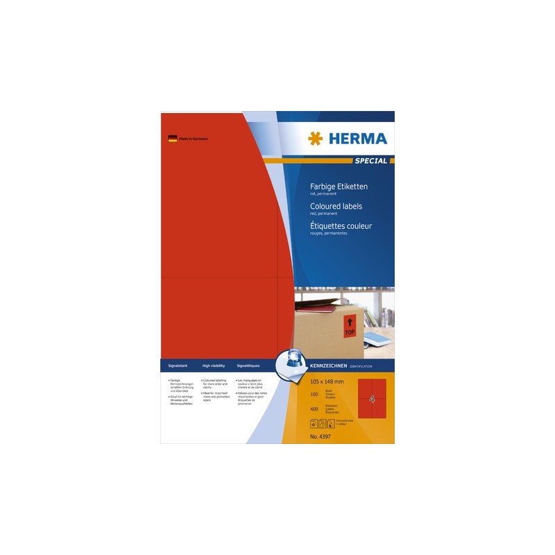 Etiketten 105x148mm Herma 4397 rot Pckg. á 400 St.