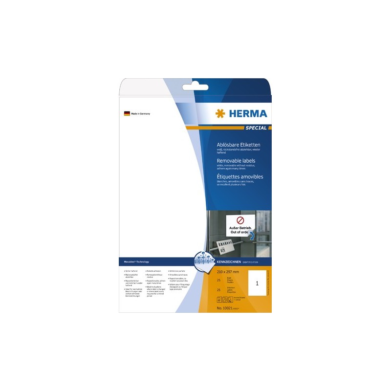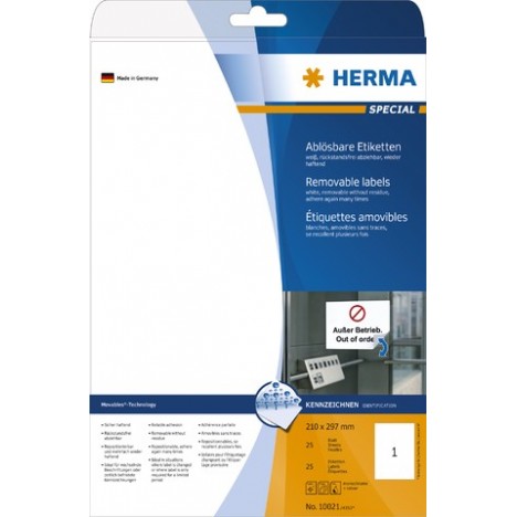 Etiketten ablösbar 210x297mm weiß Herma 10021 Pckg. á 25 Stück