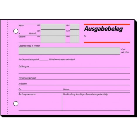 Ausgabebeleg A6 quer 50 Blatt Sigel AG615 rosa MwSt-Nachw. 1 St