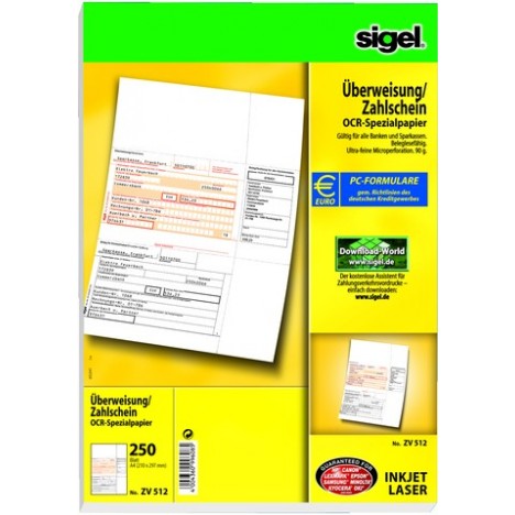 Überweisungsformular f. PC Bankformular Sigel ZV512 / 1 Pckg.