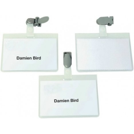 Namensschild 60x90mm oben geschlossen mit Clip 25St.