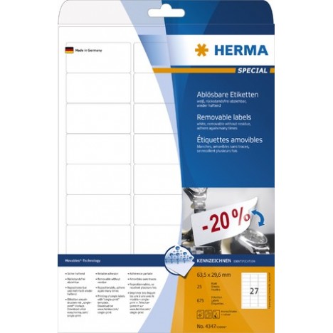 Etiketten ablösbar 63,5x29,6mm weiß Herma 4347 1 Pckg.=675 St.